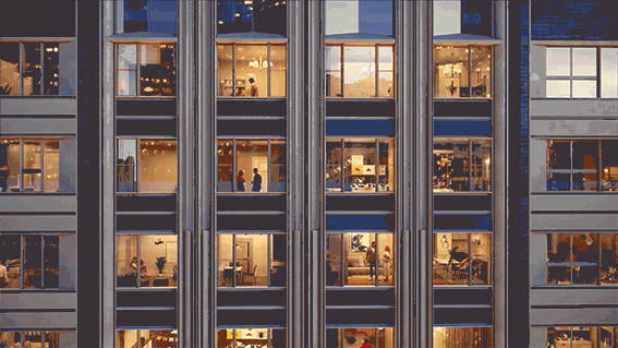 它不是简单的将贸易、室第多个功能空间进行取堆叠,而是通过空间场景的打制、使之构成相互融合的慎密立体、复合活力的空间。