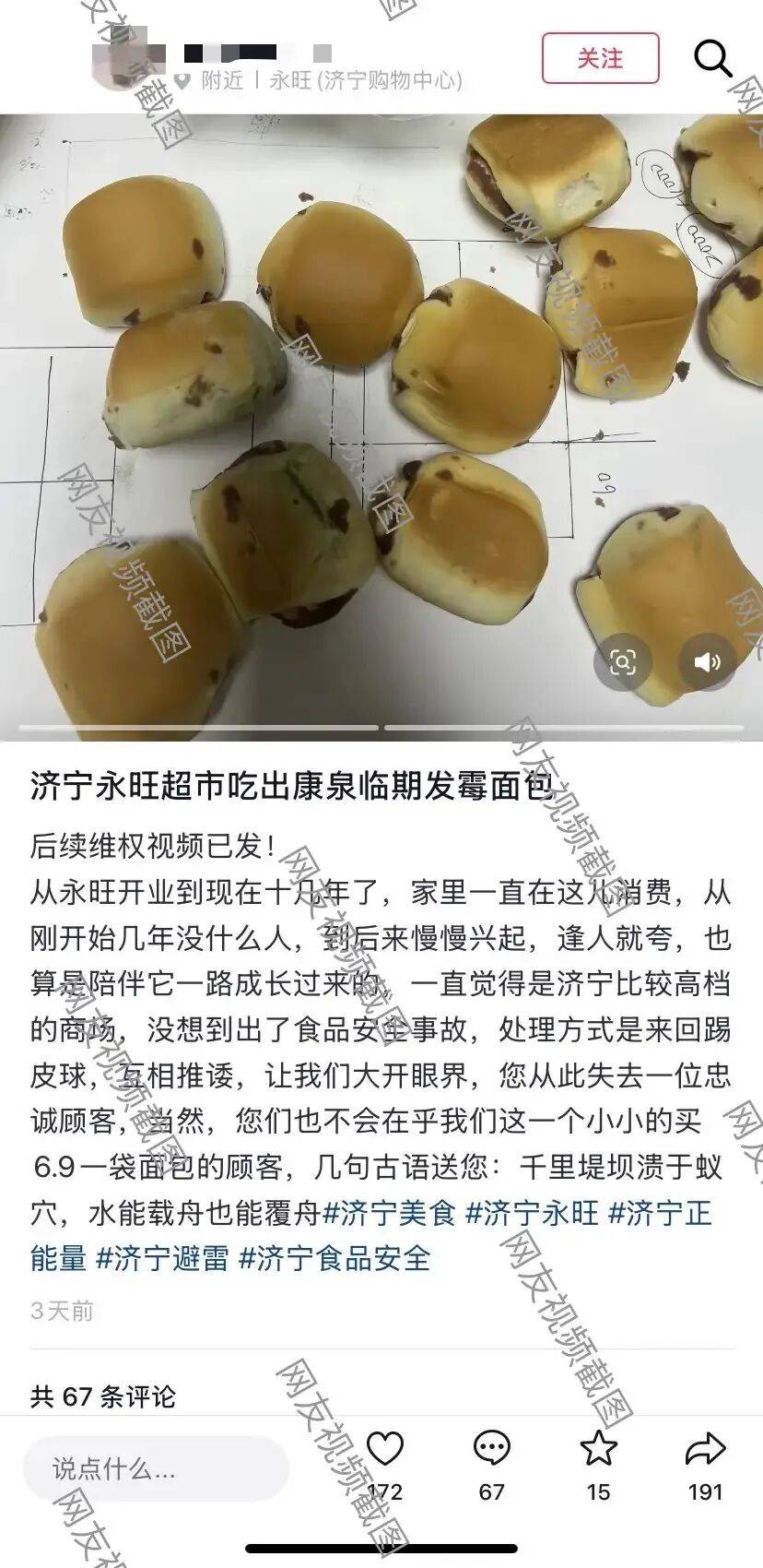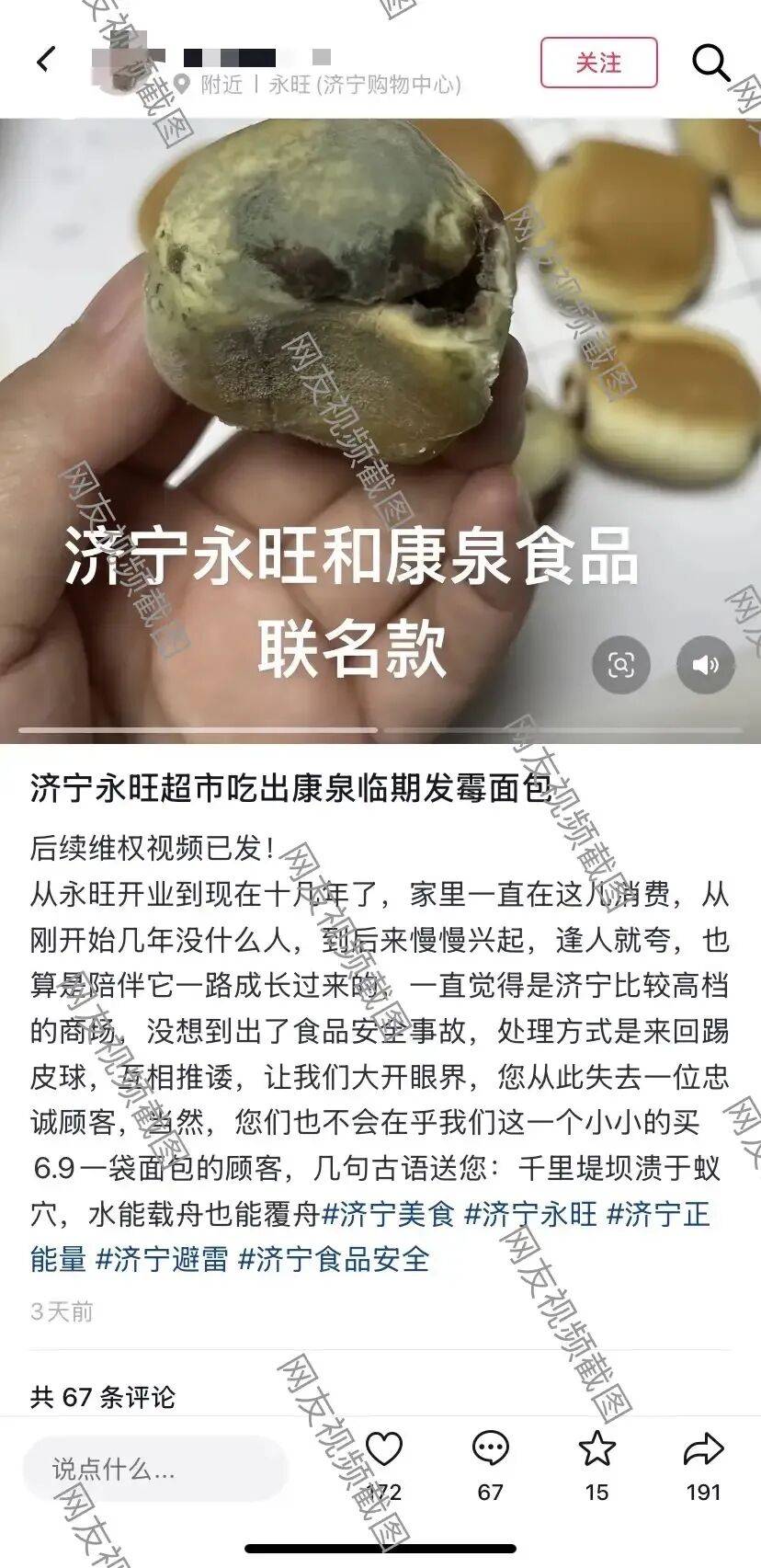 总结:济宁永旺超市呈现保质期内的康泉面包发霉事务,消费者却超市和厂家的消沉立场。食物平安问题不容轻忽,消费者正在采办食物时需隆重,相关部分应加强监管,涉事企业也应积极整改,保障消费者权益。