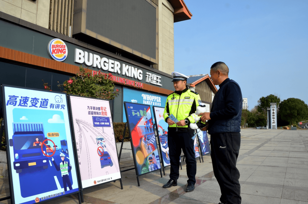 勾当现场,淮安高速三大队、辅警正在办事区夺目设立了“122交通平安征询台”和“有问答互动区”,通过吊挂从题、摆放宣传展板、发放图文并茂的宣传手册,营制出稠密的宣教空气。针对冬季高速公行车特点,辅警们连系近期典型变乱案例,沉点低温雨雪冰冻气候下车辆防滑、突发毛病应急措置等适用学问,并发放印有“守律例知礼让 平安文明出行”字样的反光贴等宣传品,将平安学问融入日常细节。